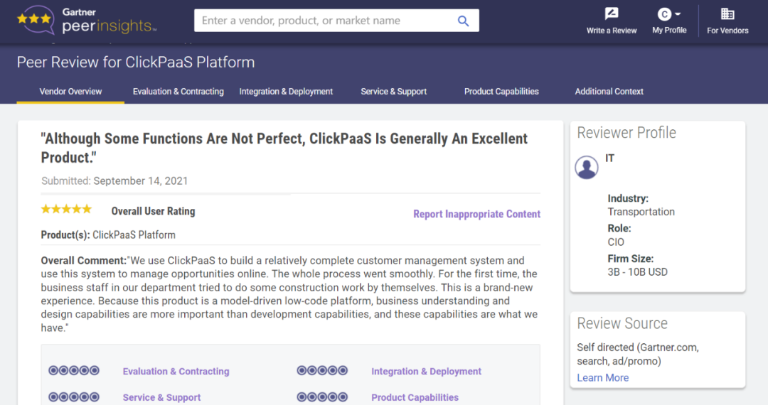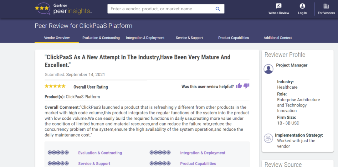 Tips::::::::::::【Peer Insights】——用户对企业IT产品和服务发布真实评价的平台。。。。。。。。。。。。。目前已有355个市场,,,,,,255,000条经过验证的评价。。。。。。。。。每一条评价Gartner会针对参评企业营收规模及参评人员信息做验证、、、、、、、、、、、、评价内容做多维核实。。。。。。。。